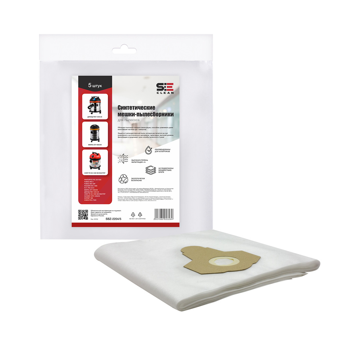 Мешки для пылесоса синтетические SeeClean, для мелкой пыли, 5шт. емкость 20л. (SBZ-2204/5)