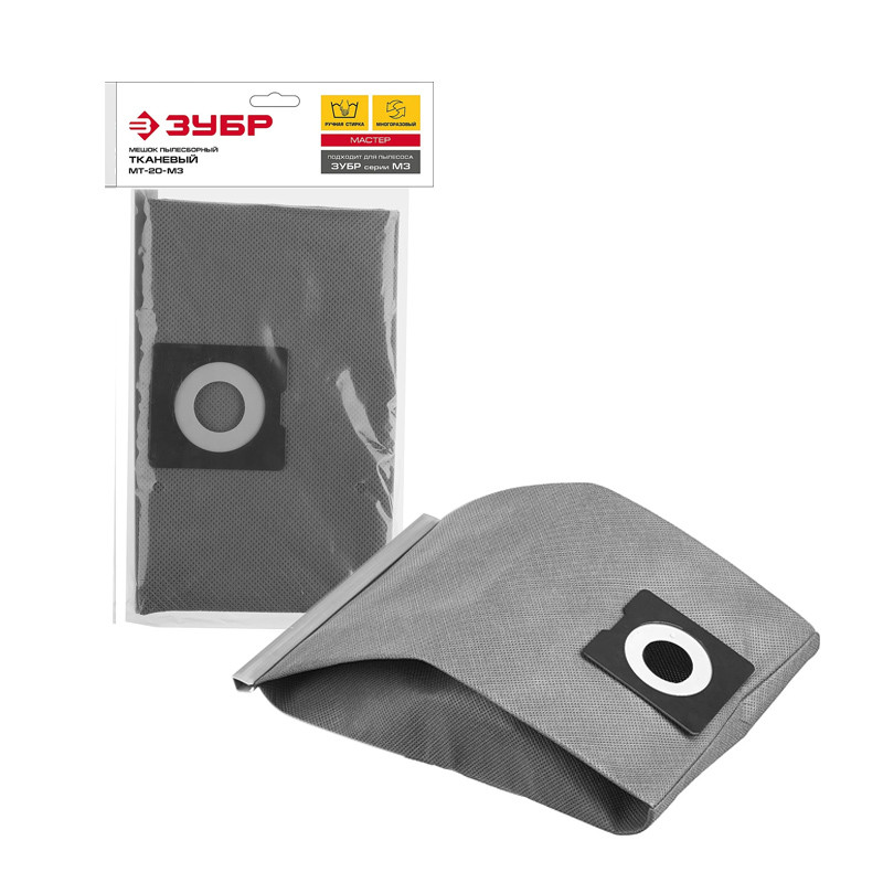 Мешок тканевый для пылесосов ЗУБР МТ-20-М3, предназначен для использования в пылесосе при сухой уборке помещений, а также при использовании с электроинструментом (с синхронным включением) для принудительного удаления продуктов пиления, строгания, фрезерования и т.д. Применяется для использования со строительными пылесосами арт. ПУ-20-1400 М3, ПУ-30-1400 М3..| ЗУБР ПУ-20-1400 М3 | FUBAG WD 4SP | КАЛИБР СПП-1200/20 |